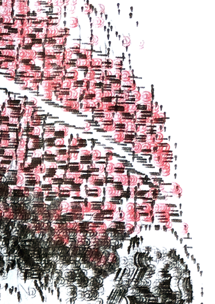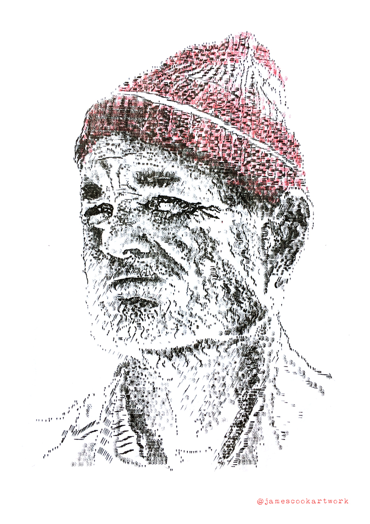 This type-written piece was produced in the summer of 2017. The drawing utilises the ability to type both in red and black ink using the typewriter ribbon. The subject features Bill Murray playing Steve Zissou in Wes Anderson’s The Life Aquatic with Steve Zissou.