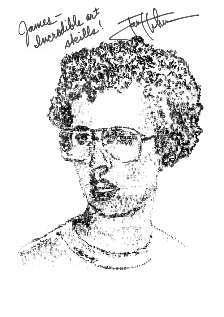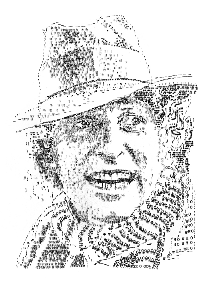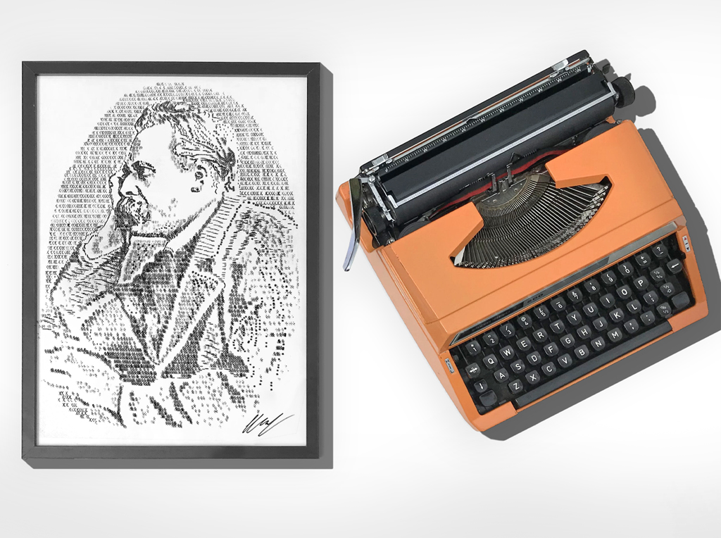 Welcome to James Cook’s collection of typewriter art. From small commissions to drawings made of more than 500,000 characters, James has produced close to 200 pieces of work on his collection of more than 40 typewriters dating from the early 20’s to the late 90’s.
