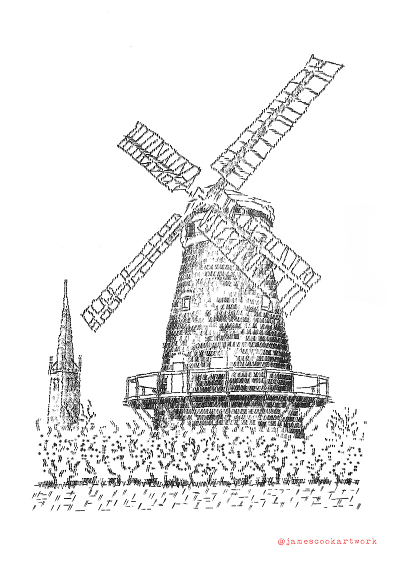 This architectural portrait was typed on a 1971 Tippa Typewriter which James discovered at a local charity shop in Braintree, Essex. This art was featured in a short film by James back in January, 2020 when he visited many local, scenic locations close to where he resides.